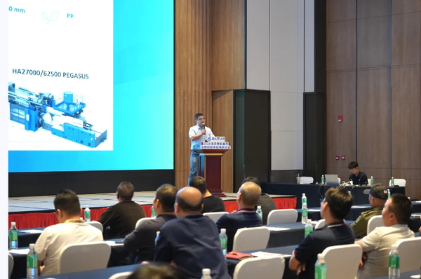 会议伊始,通过对海天机械的全面介绍,系统呈现了海天的技术积淀与全链条服务能力;随后,在专用行业应用赋能环节,技术专家针对3C电子、PET包装、物流装备等不同行业的特殊需求,提出了个性化的解决方案,助力现场企业提质增效;新能源汽车技术专题引发了与会者的深度思考,技术内容紧贴当前产业发展的实际需求,为配套企业提供了切实可行的技术参考;金属粉末注塑应用专题则针对精密结构件制造场景,分享材料利用率提升策略。